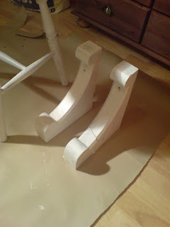 Endelig etter å ha tenkt at jeg skulle male noen møbler hvite har jeg endelig begynt, men det tar sin tid. Det skal jo tørke å. Å det har jo egentlig ikke jeg tid til. Jeg malte en del møbler i sand/brun farge for et halvt år siden. Jeg ble ikke særlig fornøyd. Nå har jeg malt det hvitt slik jeg egentlig tenkte det, og det mye penere. De gamle hylleknektene har jeg også malt helt hvitt, samt den krakken dere ser på bildet. Den har vært brun og er laget av min bestefar. Han var utrolig flink til å dreie og laget to slike til oss. Beklager bildekvaliteten men kamera er ødelagt så dette er fra mobilen. ja ja... skitt au!